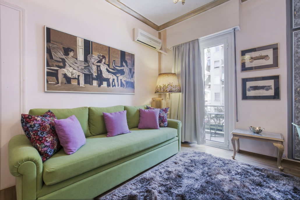 The Central Athens BestStay apartment offers a fully furnished living room decorated with vintage retro elements, a fully equipped kitchen, a double bedroom and one bathroom.