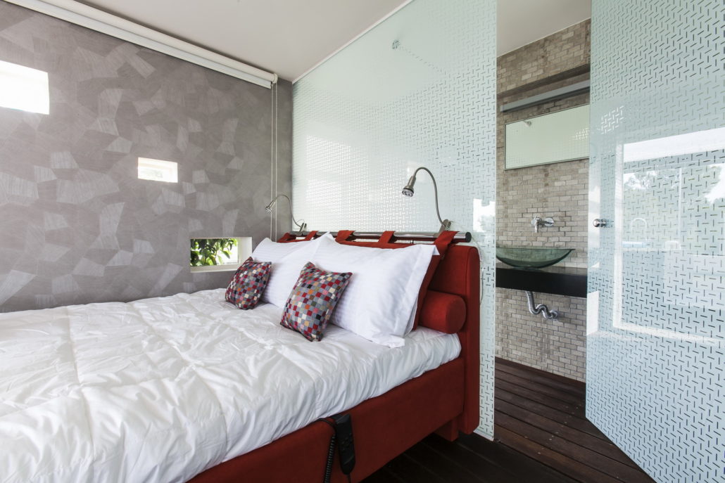 Decorated in style with pebbles on the floor deck and almost everywhere impressive RGB multicolored led lights with switch controls for any color mix, according to your… mood!